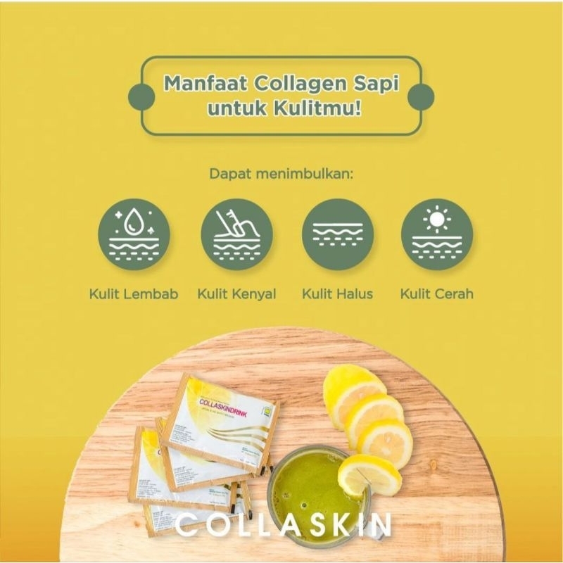 Ininih cobain Collaskin T, minuman kolagen sapi dikemas dalam teh celup yang dikombinasikan dengan kelompak bunga rosela dan santoon leaf yang dapat membantu menutrisi kulitmu dari dalam