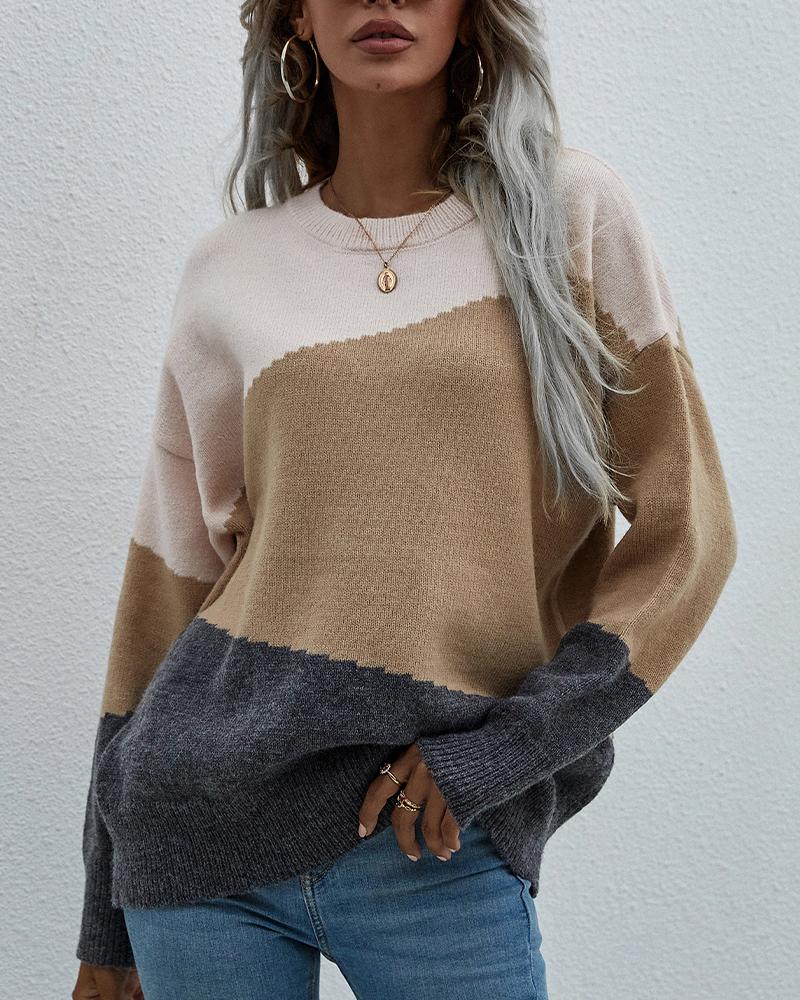 Color Block Drop Shoulder Sweater, Apricot