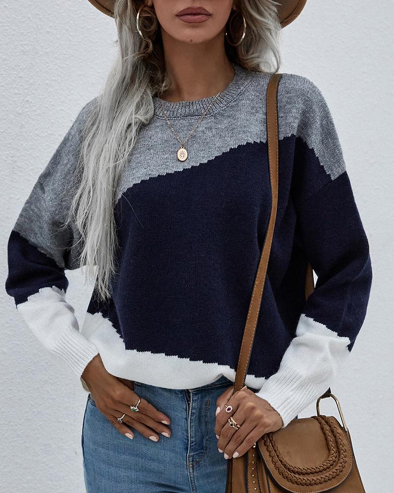Color Block Drop Shoulder Sweater, Light gray