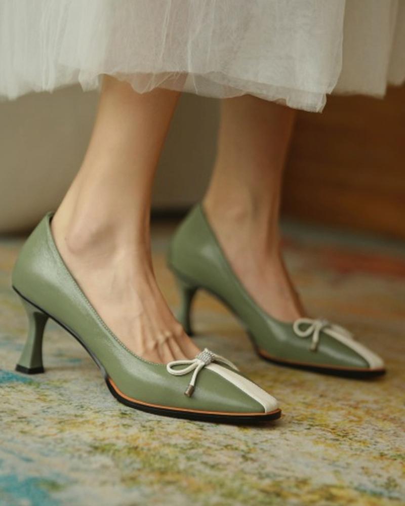 Colorblock Bowknot Front Square Toe Pyramid Heels, Green