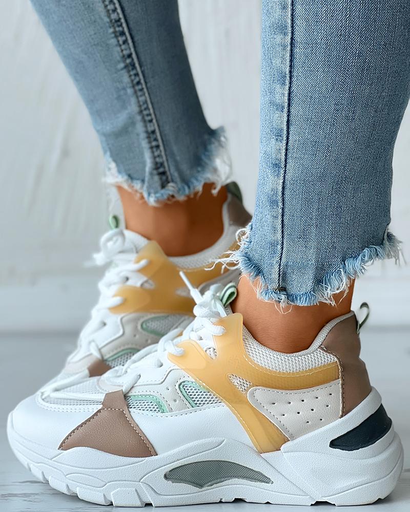 Colorblock Breathable Lace-up Sneakers, Yellow