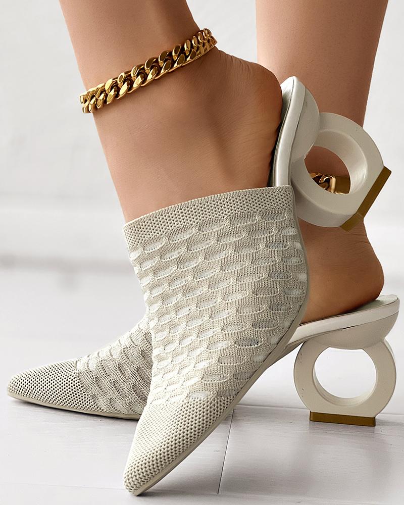 Colorblock Breathable Point Toe Slides Chunky, Apricot