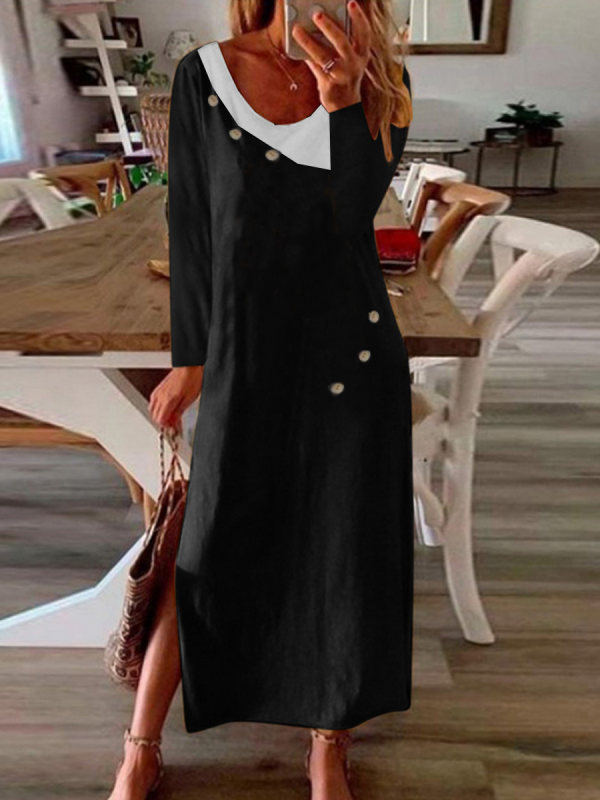Colorblock Button Contrast Maxi Dress