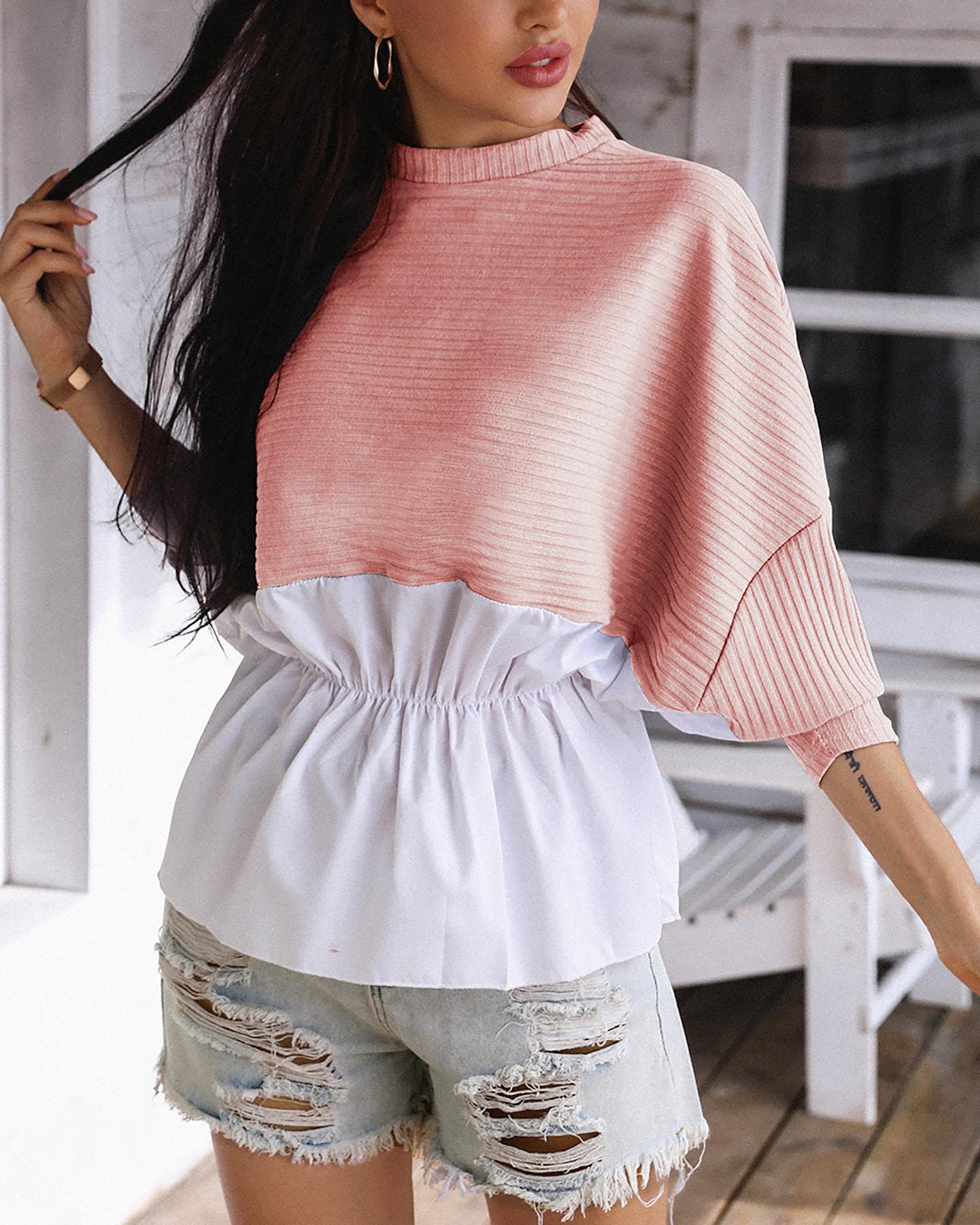 Colorblock Insert Ruffles Ribbed Batwing Sleeve Cardigans, Pink