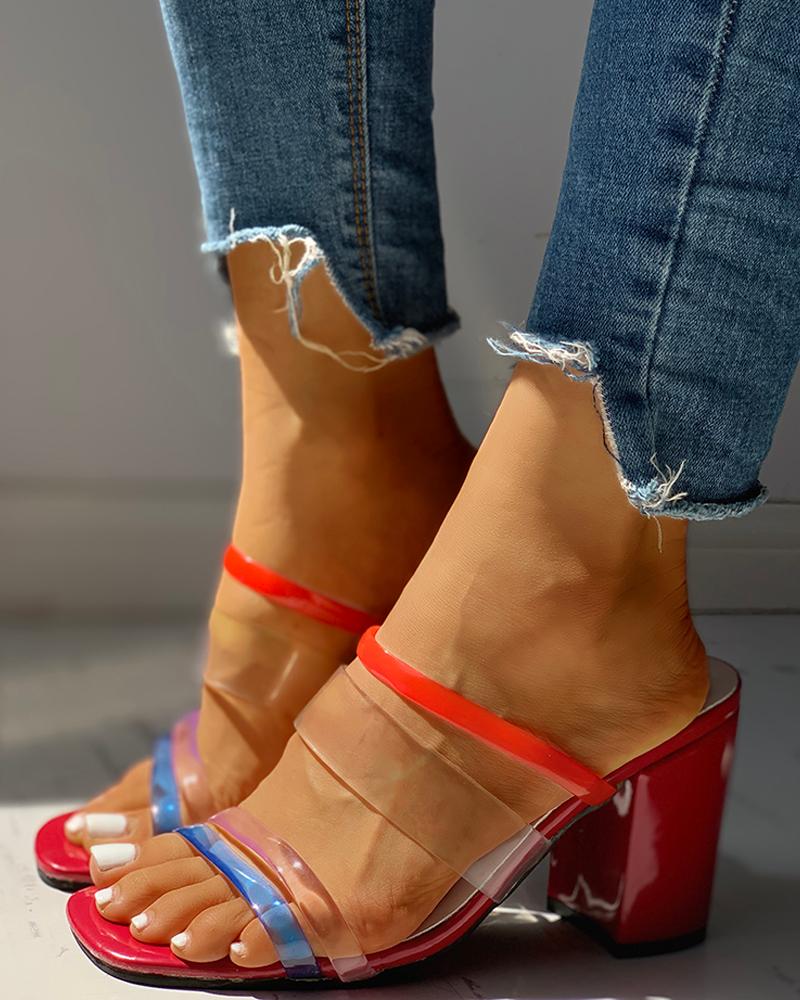 Colorblock Open Toe Chunky Heeled Sandals, Red