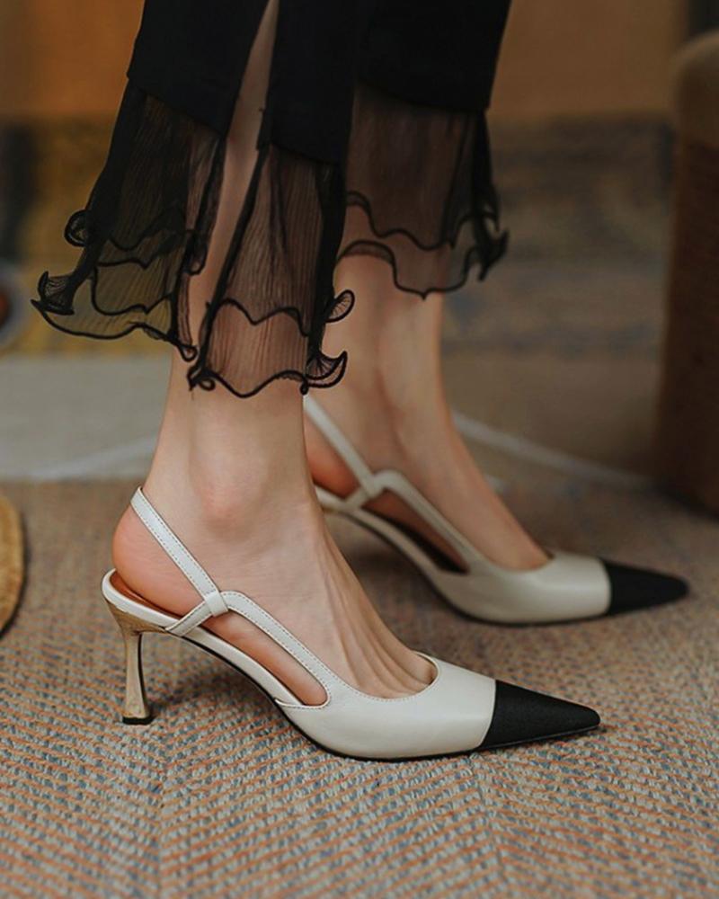 Colorblock Pointed Toe Slingback Stiletto Heels, White