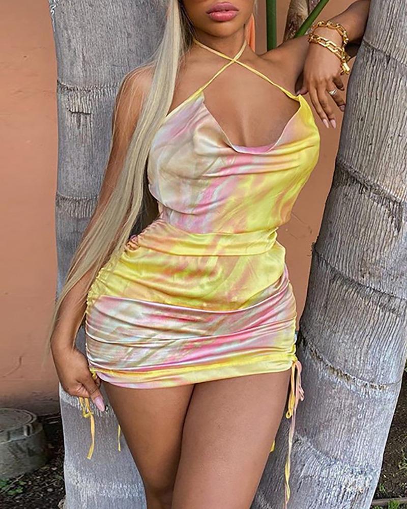 Colorblock Ruched Drawstring Dress, Yellow