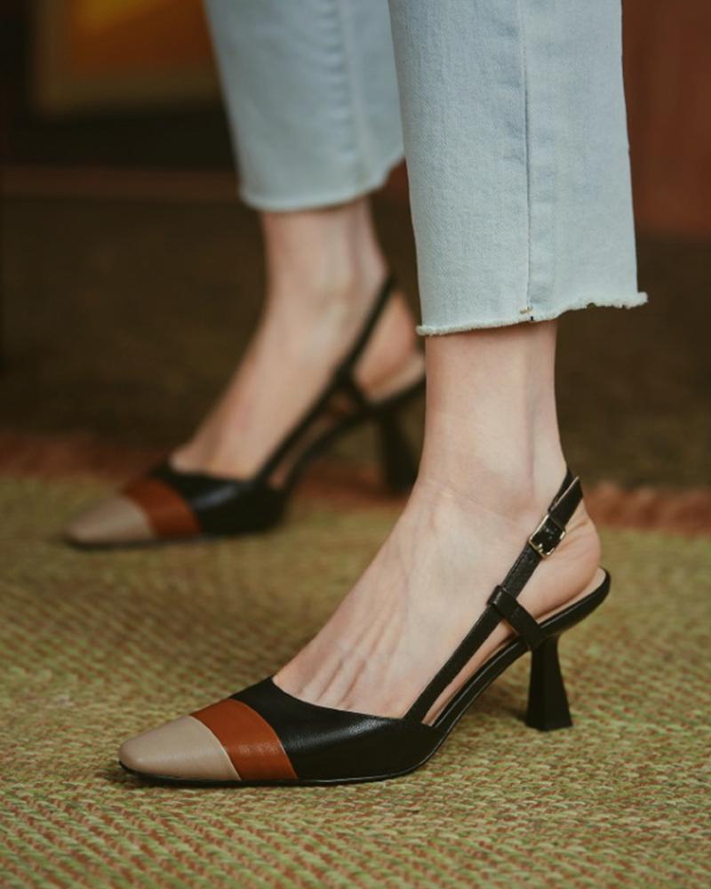 Colorblock Slingback Square Toe Pyramid Heels, Black
