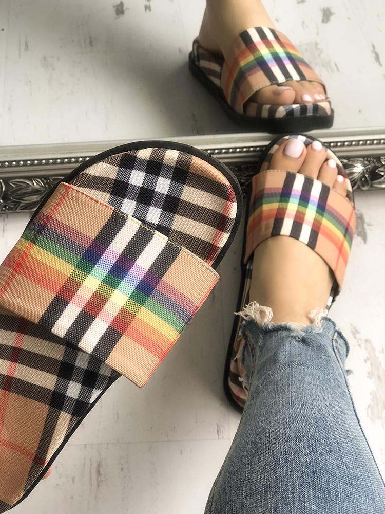 Colorful Grid Non-Slip Flat Slippers