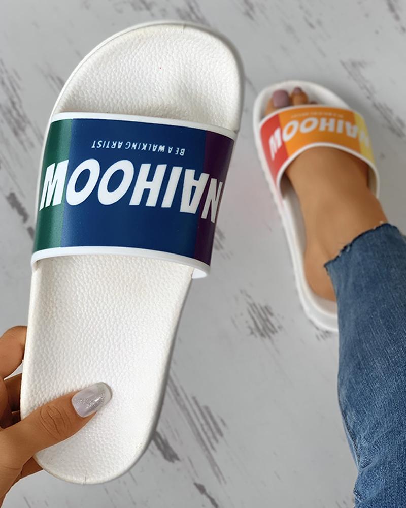 Colorful Rainbow Letter Pattern Slider Sandals, White
