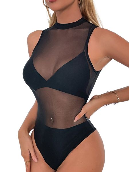 Women Sexy Sheer Mesh Lace Jumpsuit Long Sleeve Top Turtleneck Bodysuit Sexy Sleepwear Bodysuits