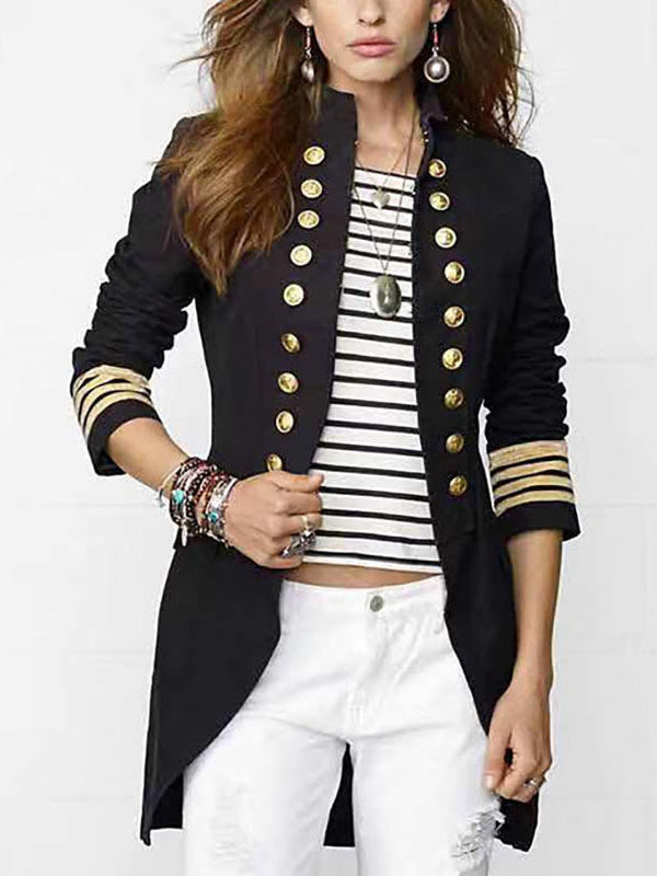 Commuting Stand Collar Pure Colour Single-Breasted Blazer
