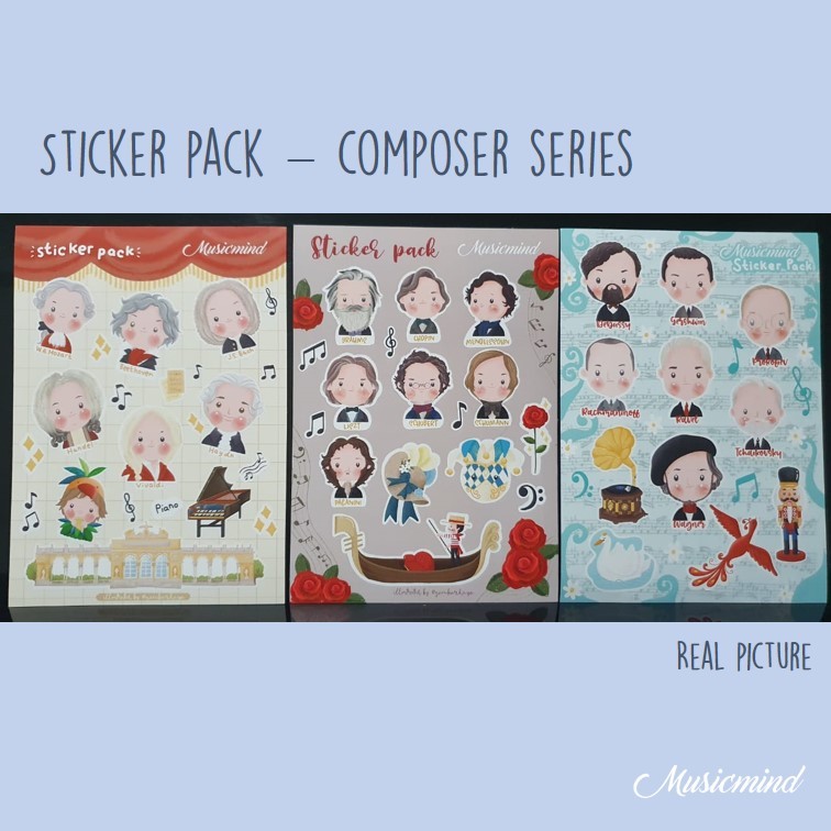 Sticker Pack Music Composer Series - 1 Set 3 sheet era Baroque, Classic, Modern.