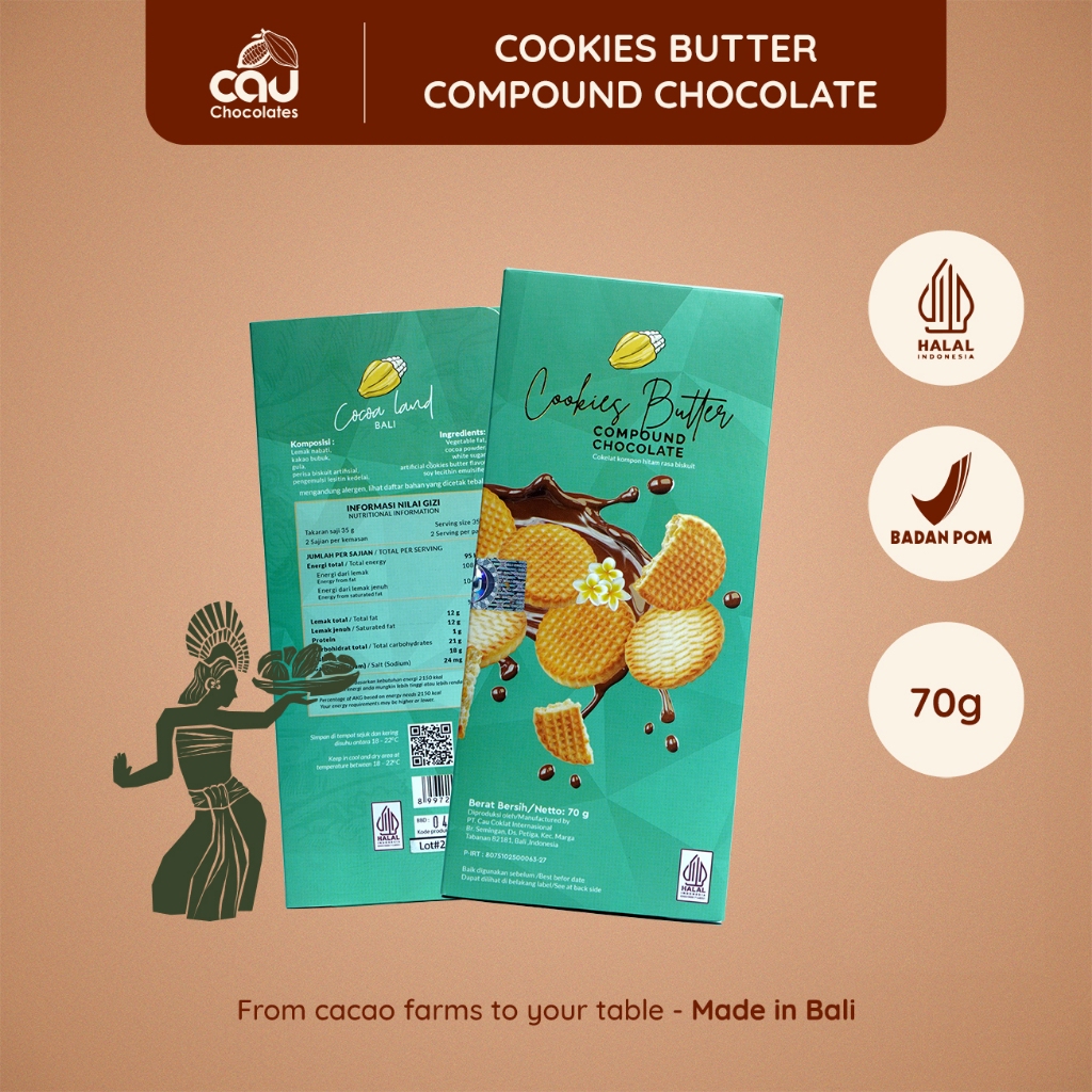 Dibuat dengan chocolate compound berkualitas yang dipadukan dengan susu. kelapa, dan beragam rasa istimewa seperti Cookies Butter. Chocolate Compound Cookies Butter cocok sebagai camilan ringan di semua kalangan, dari anak-anak hingga orang dewasa, dan sempurna dibagikan kepada teman-teman dan keluarga sama kumpul bersama.