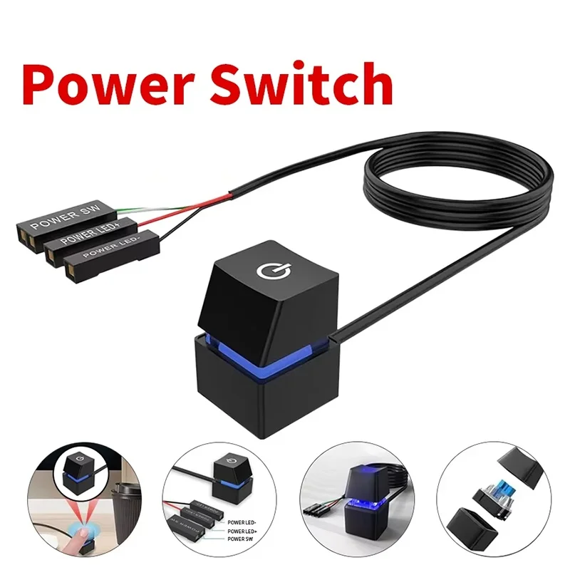 Computer Desktop Switch 1.8m Blue LED Light PC Motherboard External Start Power Switch On/Off Button Extension Cable For Laptops