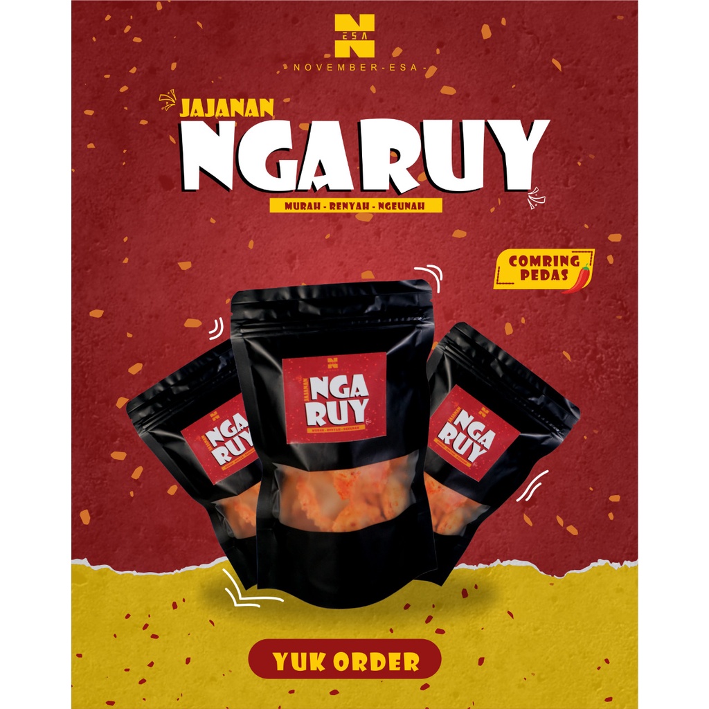 Kini hadir snack olahan singkong yang renyah dari NGARUY dengan rasa yang bikin ketagihan. Cocok dijadikan oleh-oleh, dijadikan teman makan nasi, teman nonton drakor ataupun teman hidup. Dijamin bikin bahagia kaya masa depan kamu.