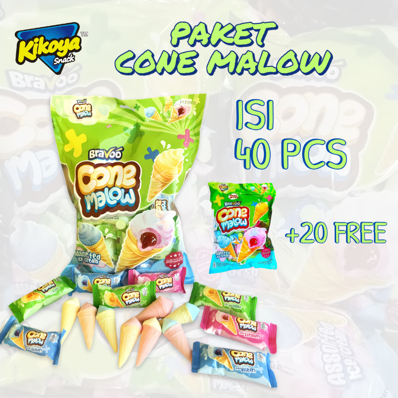 Cone Mallow 40 + Free 20 Pcs Marsmallow Aneka Snack Rasa Snacks Makanan Manis Rendah Gula