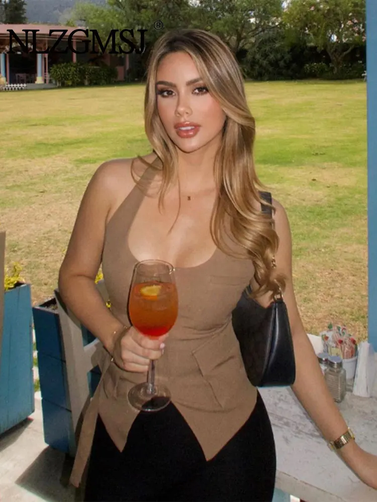 New Summer Lace-up Buttonless V-neck Sleeveless Women's Print Sexy Hot Girl Backless Split Sling Dress