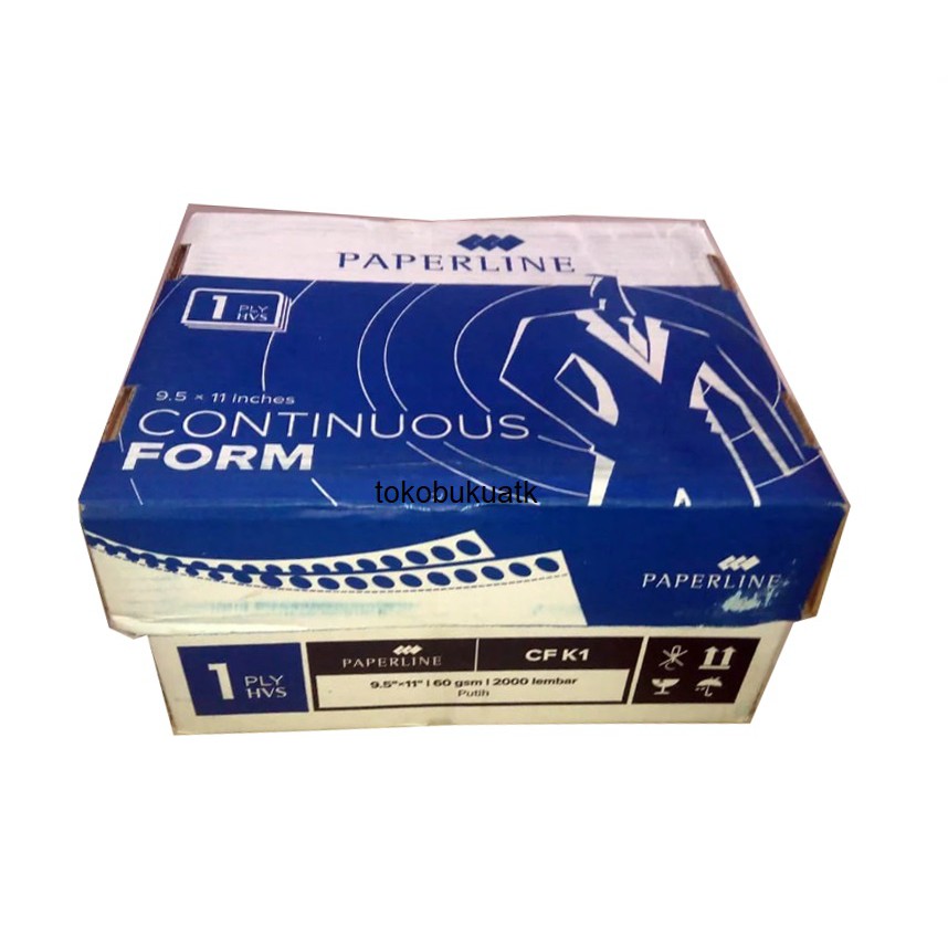 Continuos Form merek Paperline Rangkap 1- ukuran 9-5 inch X 11 inch- isi 2000 lembar- (isi 1000 set) berat 60 gsm
