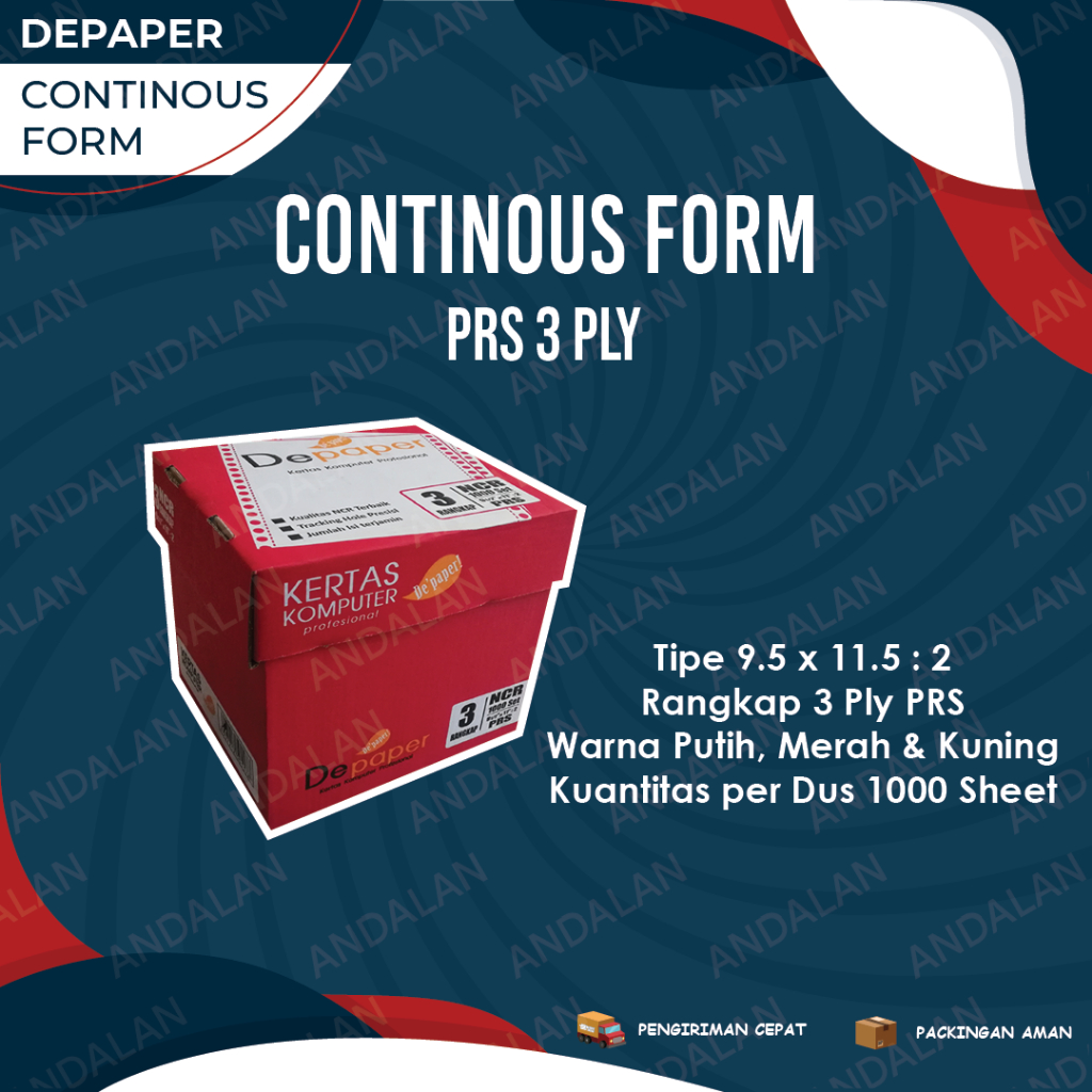 Continuous Form Depaper ukuran 9,5 x 11:2 PRS rangkap 3 (putih-merah-kuning)