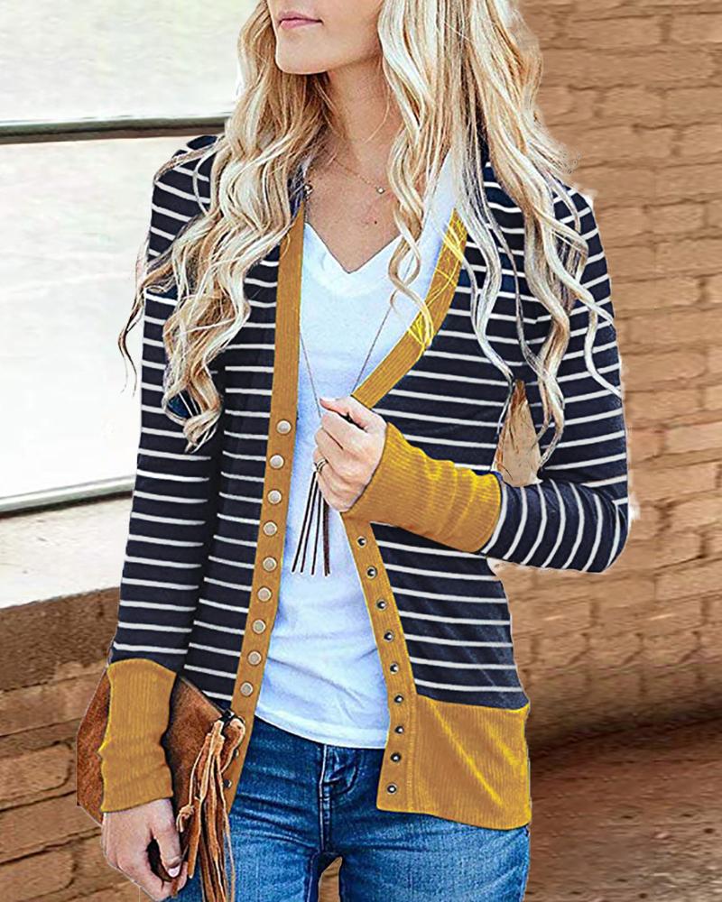 Contrast Binding Striped Buttoned Cardigan, Yellow
