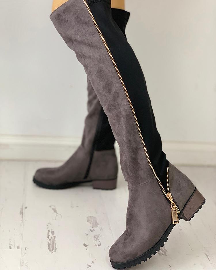 Contrast Color Zipper Design Boots, Gray