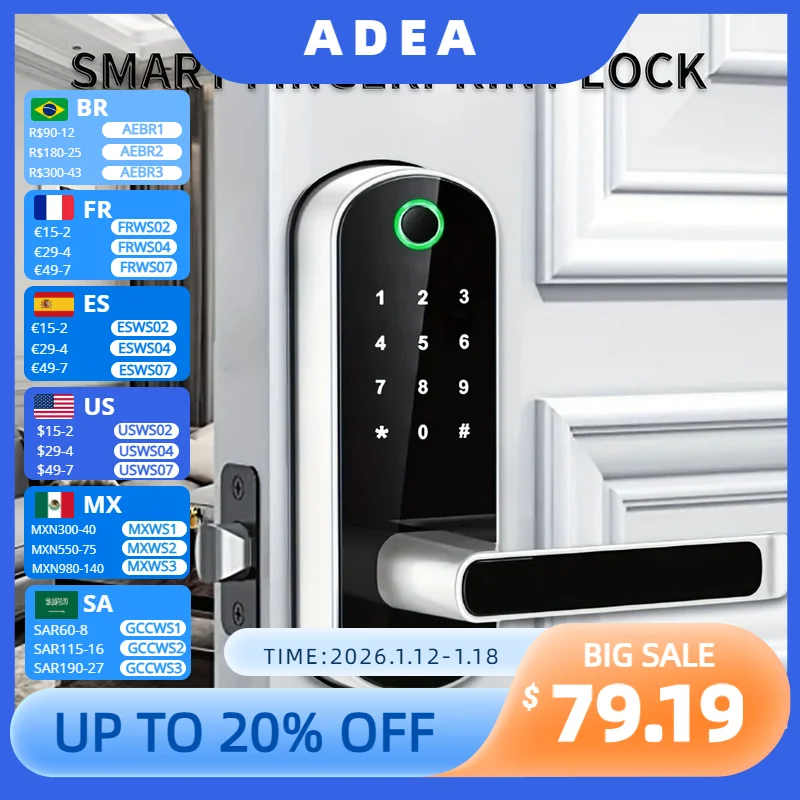 Control Keyless WIFI Digital Touchscreen Lock NFC IP67 Waterproof with 2 IC Cards Smart Fingerprint Door Lock App Remote