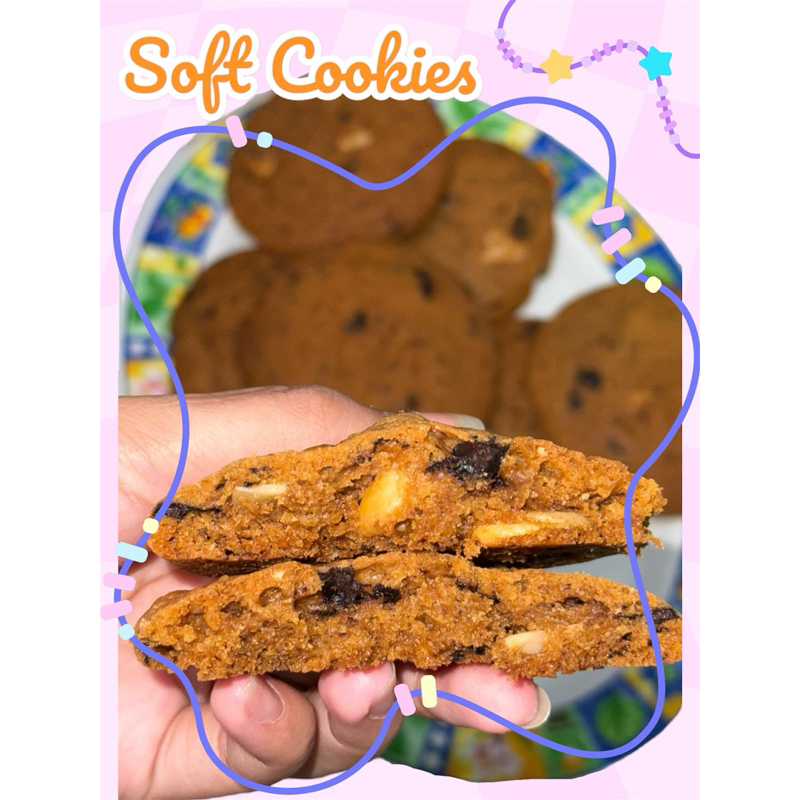 Soft Cookies yg Krunchy di luar Soft di dalam, dengan aroma brown sugar bertoping coklat dan kacang almond