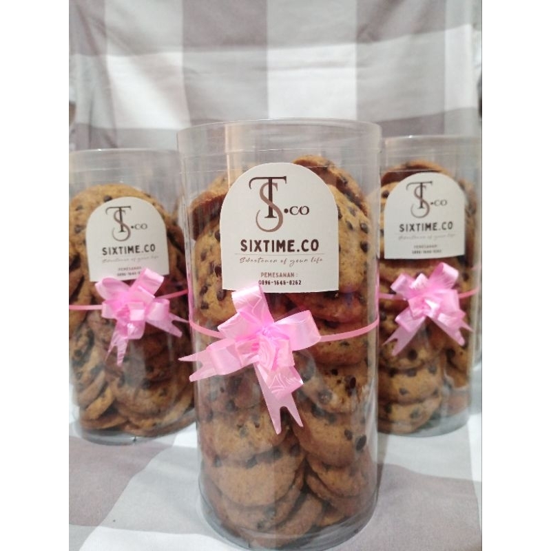 Cookies choco chips dengan bahan terpilih dan terbaik. Cocok digunakan untuk camilan, hampers, hadiah, kue lebaran, dll.