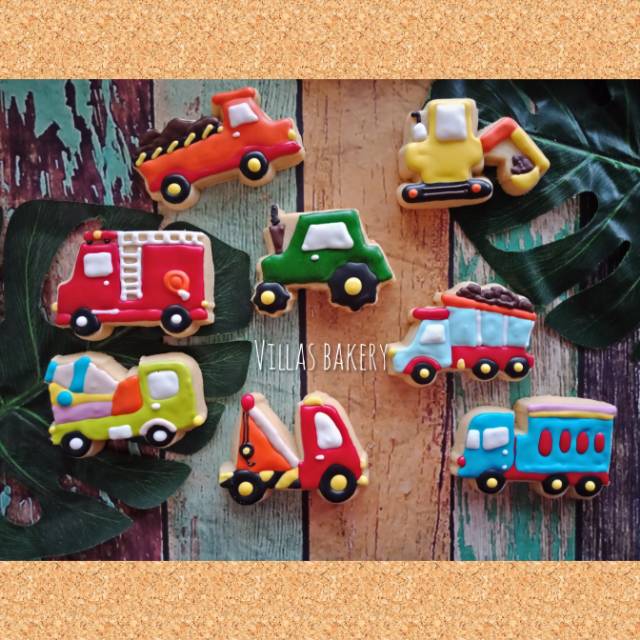 Cookies edisi truck, ada 8 macam ya : pemadam kebakaran, mobil derek, truk molen, truk sampah, truk pasir, traktor, excavator, truk barang