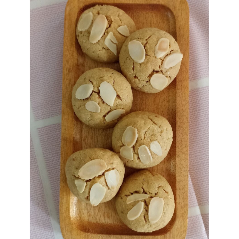 Perpaduan antara kacang almond dan keju. Kue kering yang renyah, gurih, dan nikmat.