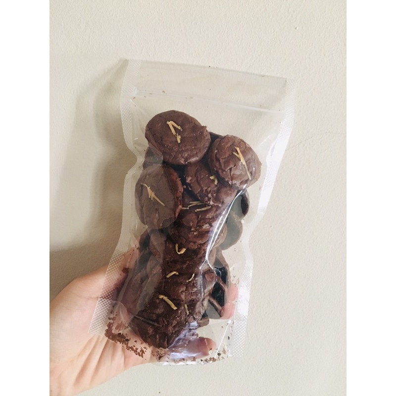 kue kering dengan cita rasa coklat dengan topping keju di atasnya.