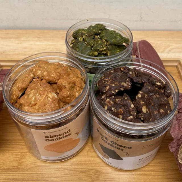 Cemilan sehat dengan kandungan oat, almond, chia seed sebagai bahan utama.
