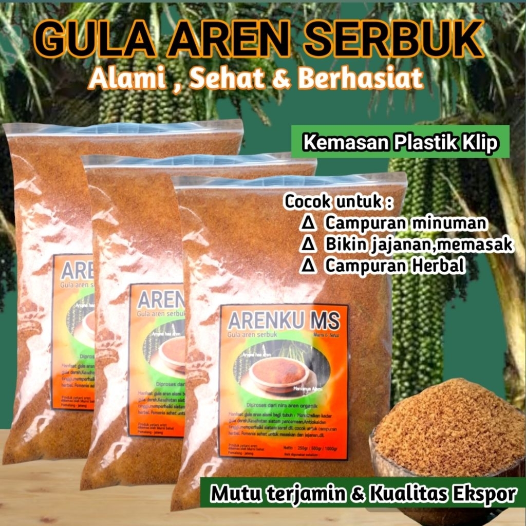 Nira Aren yg diproses menjadi gula aren pasir ( crystal ) utk lbih mudah dikonsumsi tinggal ambil dg sendok sesuai keinginan . berbeda dg gula aren batok atau bentuk bulat .