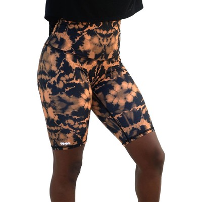 Cool Creative Womens Tie-Dye Midi Stretch Workout Bike Short Athletic BHFO 4496, Brown tie-dye, 9900BIKSWTD