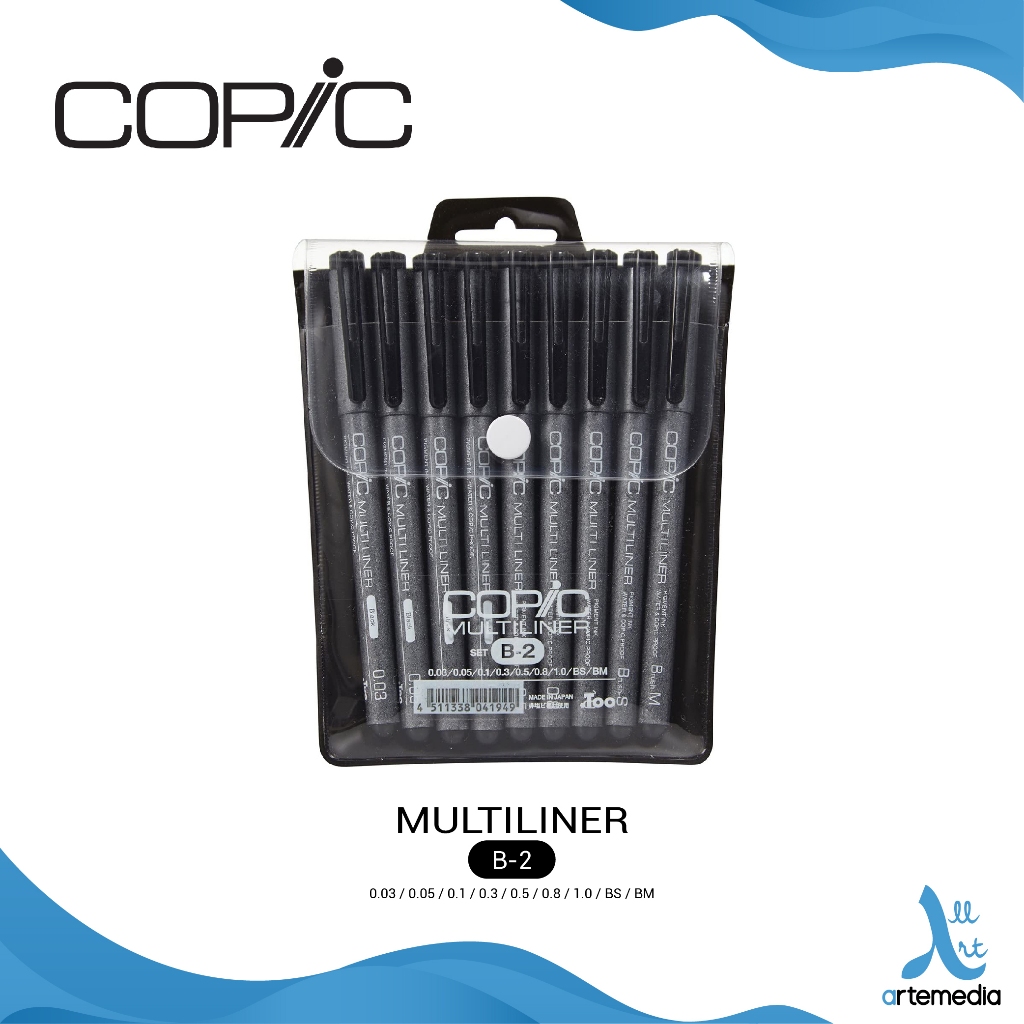Pena tinta Copic Multiliner serbaguna berbasis pigmen dan kompatibel dengan spidol Copic. Multiliner juga tahan air - tinta tidak akan luntur dengan air setelah garis pena benar-benar kering.