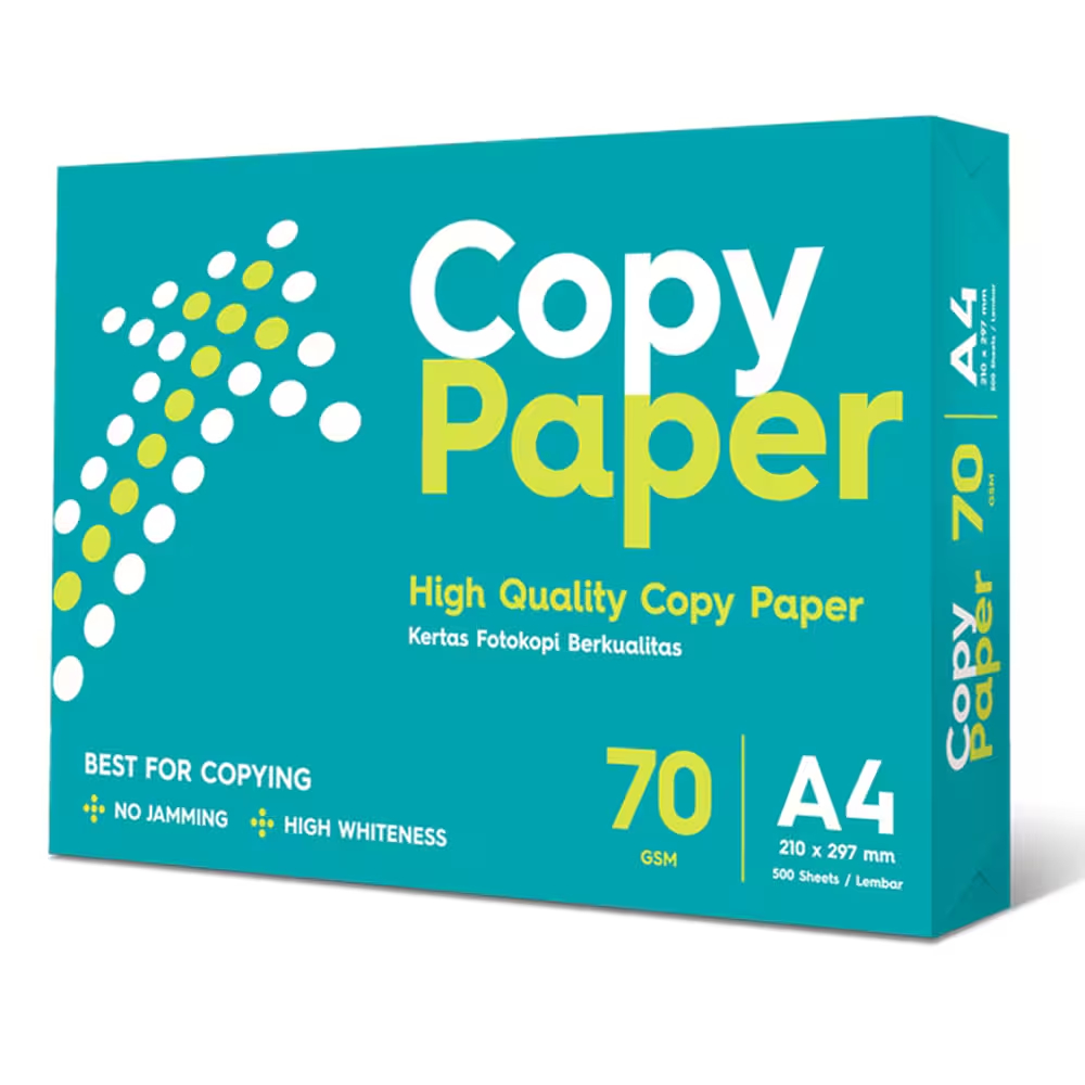 Keputihan kertas ini sangat banyak diminati oleh perkantoran perkantoran di indonesia. copy paper bukan hanya bisa di pakai untuk fotokopinamun kualitas kertas ini juga cocok untuk print. kertas ini juga ramah lingkungan, jangan coba coba yang lain lagi. pesan sekarang dan coba rasakan bedanya.