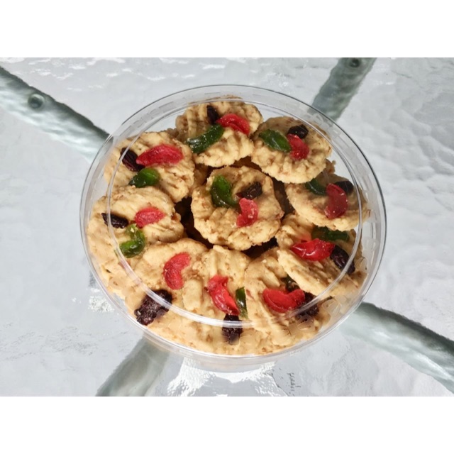 Kue kering dengan bahan dasar cornflake dan keju yang diberi toping kismis dan chery #kuekering #kuekeringlebaran #cornflakes #keju #enak