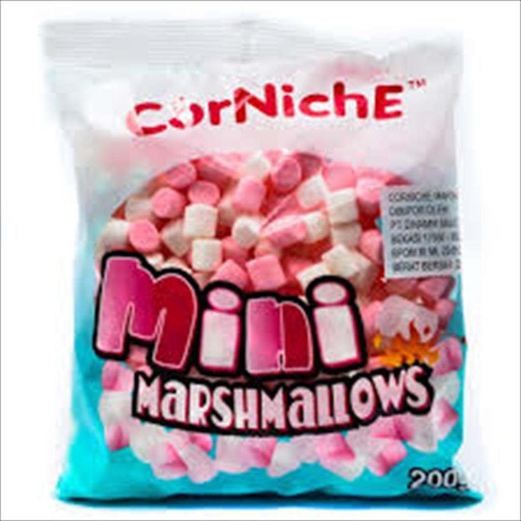 Corniche Mini Marshmallow merupakan produk terkenal dari Singapura yang berbentuk mini silinder yang digunakan untuk toping makanan dessert untuk ditambahkan keatas untuk memberi warna, dan rasa yang melting..