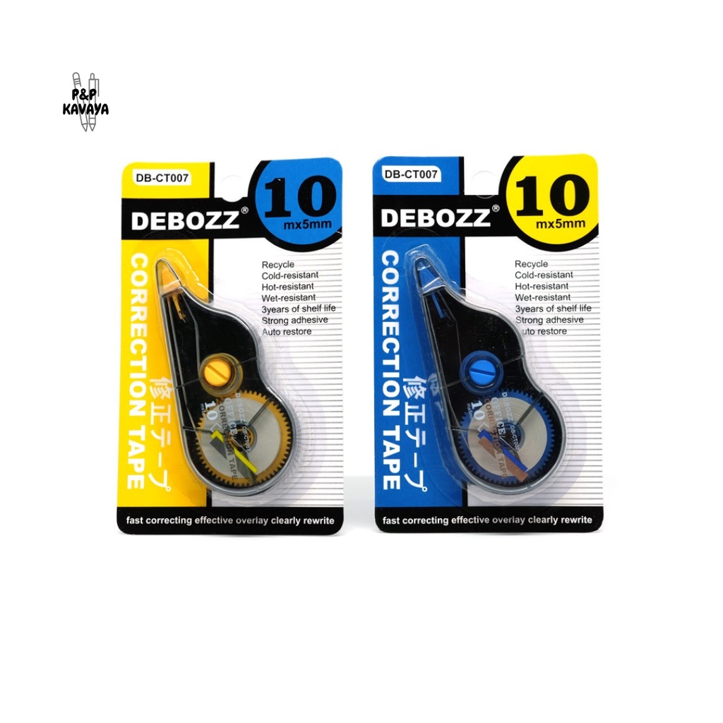 Tipex dengan merek Debozz CT007. Debozz Tip Ex Kertas Unik adalah alat tulis sekolah dan kantor yang memiliki desain simpel, praktis, dan tidak memakan banyak tempat ketika dibawa, produk ini memiliki desain yang unik, tip-ex ini juga tidak beracun serta memiliki isi berbahan plastik sehingga tidak mudah robek.