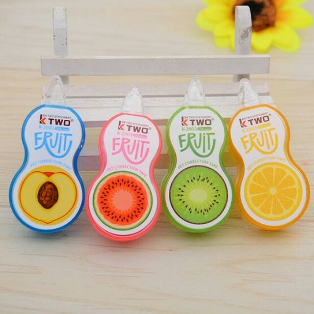 Correction Tape Fruit panjang 5m, lebar tape 0,5cm. Tape tidak mudah putus, dapat menutup tulisan dengan rapi. Pilihan buah lucu-lucu, warna menarik.