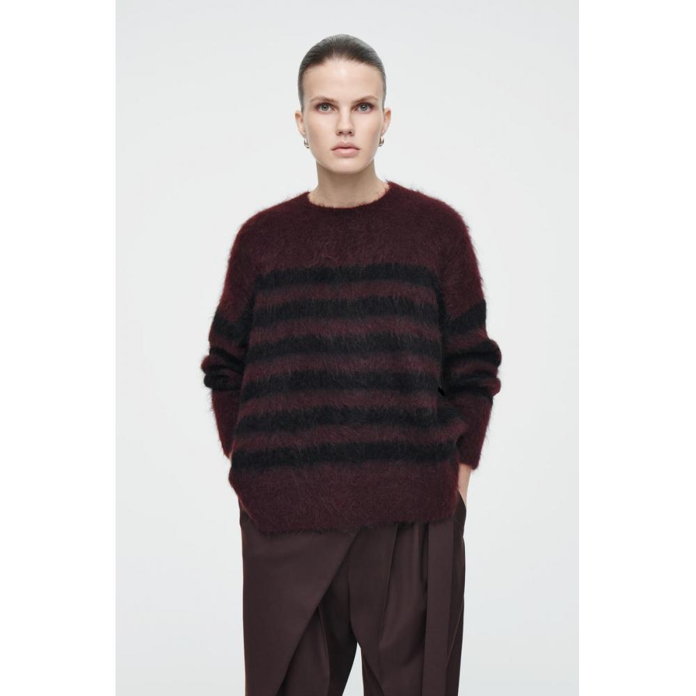 Cos Japan Полосатый мохеровый свитер с круглым вырезом BLACK BURGUNDY STRIPED/LP
