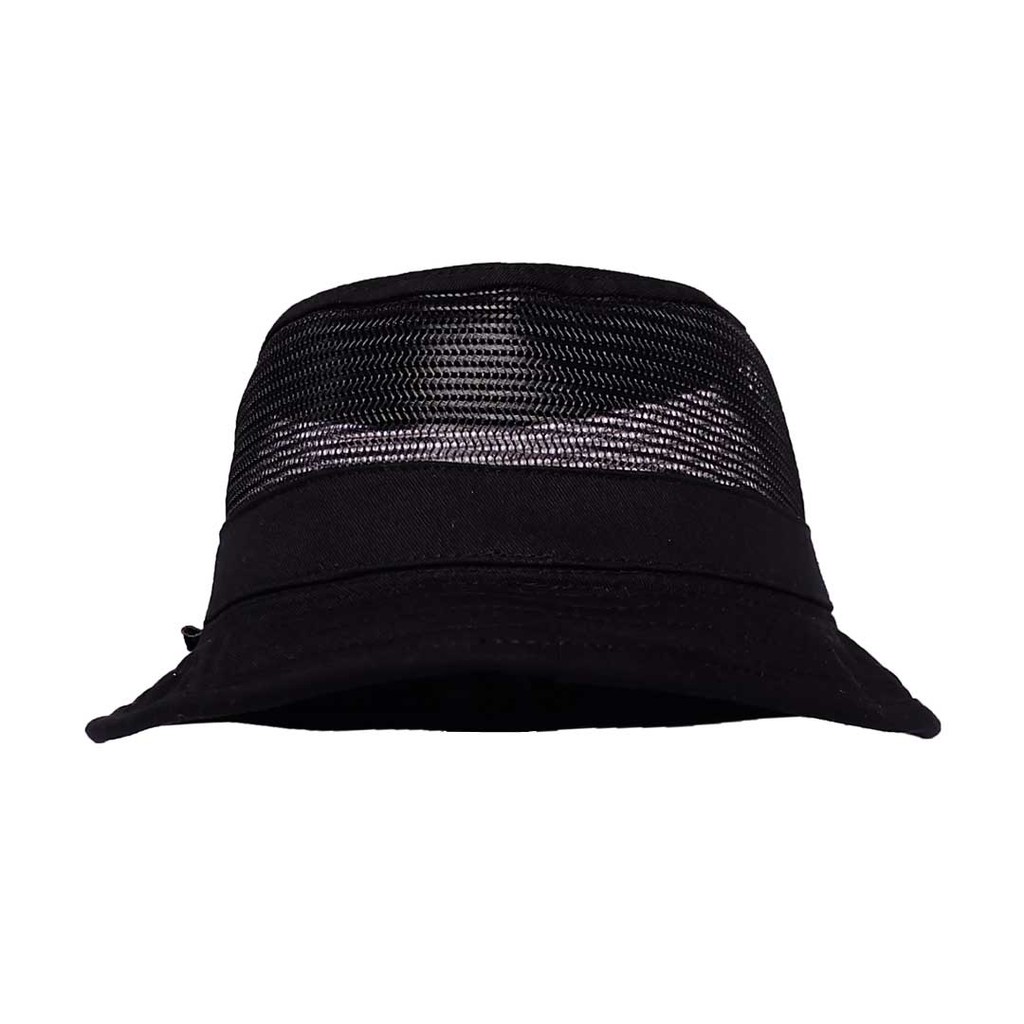 Bucket hatCVC drill fabric, Poly meshwoven labelBlack Colorunstructured -no reinforcementOne size fits allLingkar Kepala: 59 cmKedalaman: 9 cmDiameter: 25 cm
