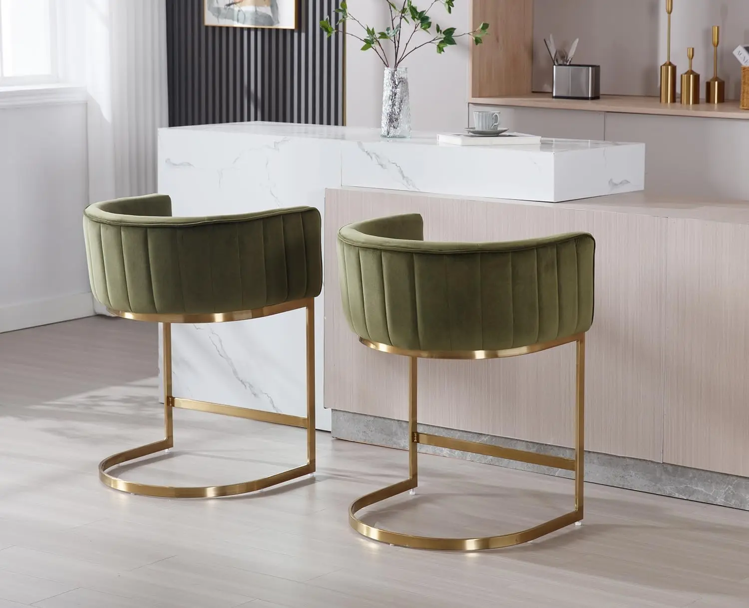 Counter Height Bar Stools Set Of 2, Modern Velvet Upholstered Barrel Arm Barstools With Gold Frame For Kitchen, Customized