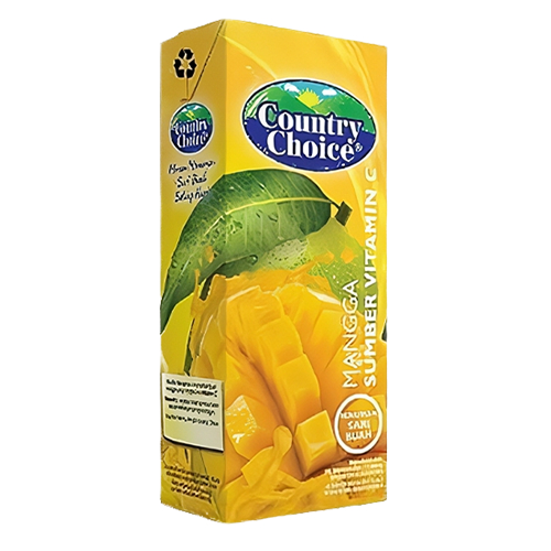 Country Choice Mango adalah jus mangga kemasan dari merek Country Choice yang diproduksi oleh PT Sinar Sosro, terbuat dari buah mangga berkualitas tinggi, kaya vitamin A, B, dan C, dan hadir dalam kemasan praktis 250 ml untuk dikonsumsi sehari-hari. Jus ini menawarkan rasa manis tropis yang khas dan merupakan sumber nutrisi praktis untuk kebutuhan harian.
