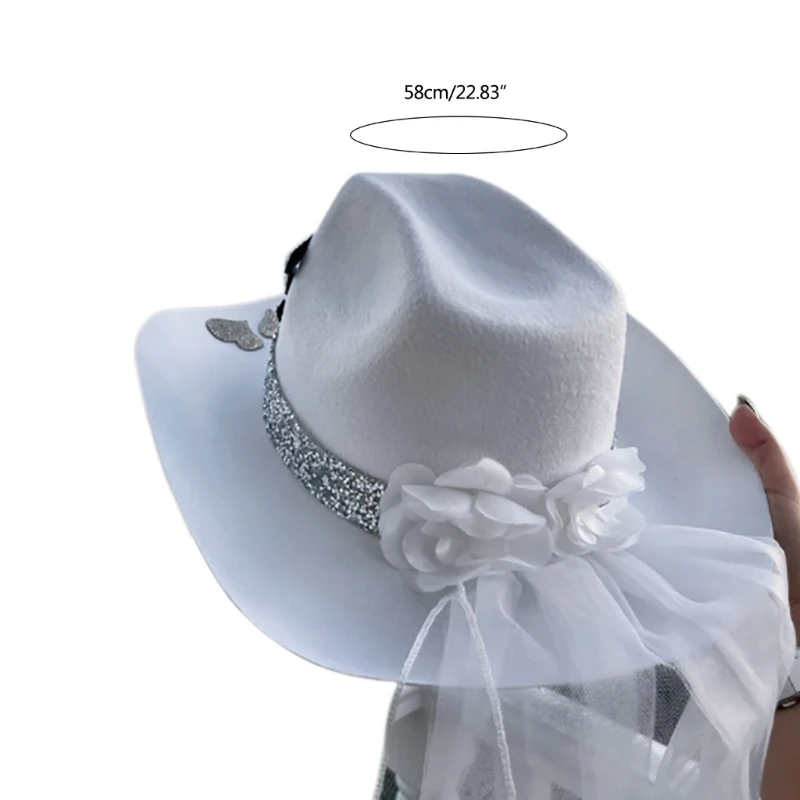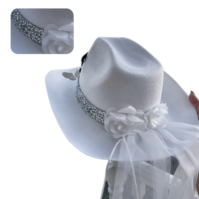 Cowgirl шляпа и вуаль для свадебного душа белая Cowgirl шляпа девичник брикет блестящая шляпа Cowgirl с широкими полями