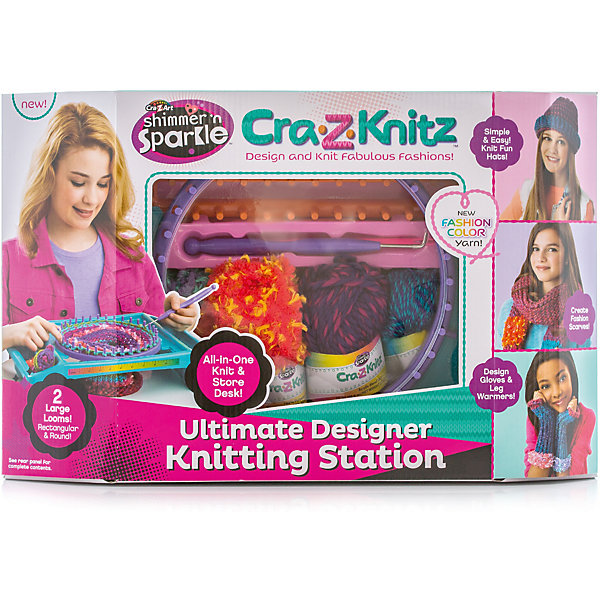 Кроме того, результат должен порадовать юную рукодельницу - связанные поделки можно будет носить, как и обычные вещи. В наборе находятся длинный станок и круглый, которые устанавливаются на специальную установку, а также вязальный крючок и специальная игла, благодаря этим предметам можно будет изготавливать вещи практически любых видов и размеров. Так же набор содержит 8 моточков разноцветной пряжи и цветные наклейки.