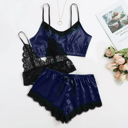 Mrat Pajama Sets Pajamas Womens Knit New Lace Lingerie Silk Underwear Sleepwear Underwear Pajamas Satin Shirt and Full-Length Pant Pajama