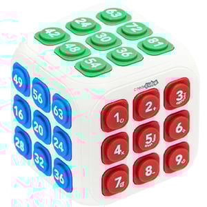 CreaCube has a total of 3x3 numbers per side of the cube, and those 9 numbers are attached with soft, rainbow-colored silicon buttons. On the first red button, you can set the power, addition, multiplication, division, subtraction, multiplication, times table, difficulty, mute, and sleep mode. If you press the button of your choice (among addition, multiplication, division, subtraction, and times tables) for three seconds, you'll hear the sound, and if you follow this fun guide, youll improve your mathematical ability. You can play a systematic game of calculation that leads to a low-middle-high level of difficulty, and if you get it wrong more than two times, you can get a sensible hint.