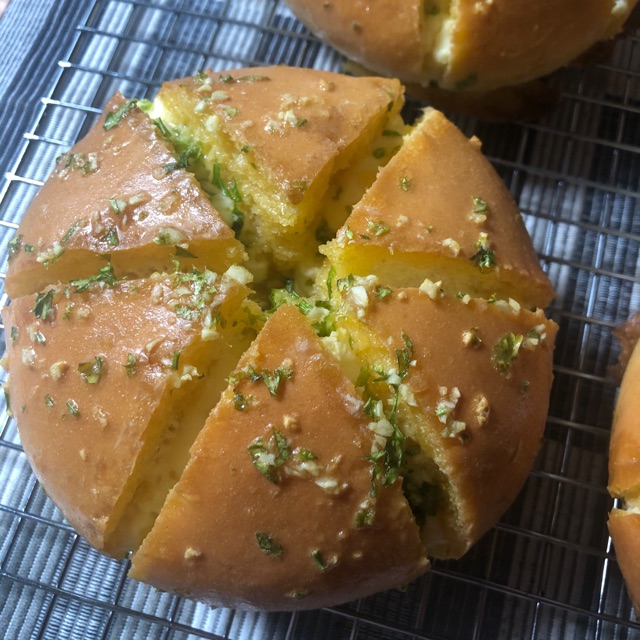 Roti lembut, dibuat fresh dengan isian cream cheese yang manis segar dan topping garlic yang wangi dan gurih. Dikemas per 2 pcs diameter 10cm